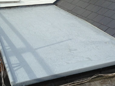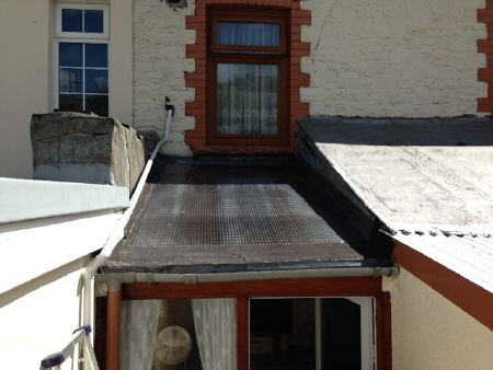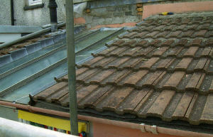 The photos below show a shot of the valley, the valley was stripped out completely, new rafters fitted, covered with boards and then covered with fibreglass. |